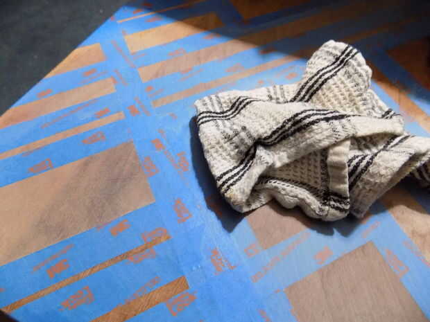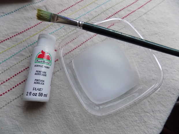 Diluir la pintura blanca. Cuánta agua se agrega depende de sutiles cómo quieres el diseño que. Le puse de 1 parte de agua a 1 parte de pintura. Si no estás seguro, utilizar más agua que pintura y añadir pintura si no es tan oscuro como te gustaría. También se podría aplicar la pintura directamente, pero quería un look más rústico apenado.