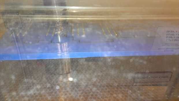Se corta la línea con un peso de 001, mientras que líneas con otro peso se grabe solo. Las grandes líneas que deben ser grabado al agua fuerte y lleno de oro serán grabadas por medio de cinta adhesiva.