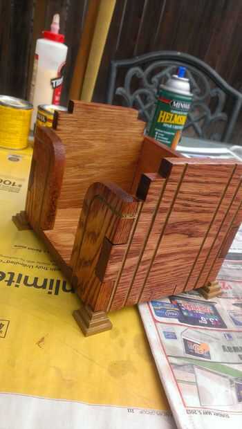 Usted puede mancharlo primero si quieres las piezas de diferentes colores, o después, sólo ten cuidado de las líneas de oro, para no tener mancha en ellos.