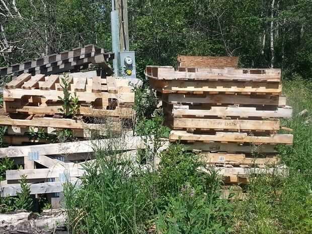 Medir y cortar 4 paletas hasta la altura deseada (a misma altura que los soportes de 2 x 4 que atornillan en la pared)