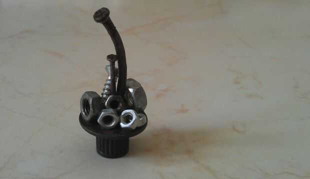 Hay algunos shell de modificar proyecto de casquillo del vástago de válvula. Quiero hacer alguna cosa más arte, más personalizado en la cáscara. Así pues, vamos allá!. Recoger algunos pequeños pernos, tuercas. Usted puede utilizar cualquier material que usted quiere hay debe ser pequeño, coloque los pernos y tuercas uno por uno a la válvula de vástago usando gule estupendo.