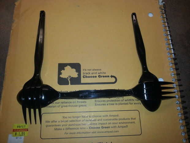 III. Coloque la cuchara con pegamento en la parte "posterior" de la horquilla desde la otra esquina. Actuar con rapidez; el pegamento se seque rápido.