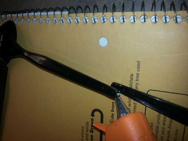 II. Pegue un pequeño punto en la punta de una de las cucharas.
