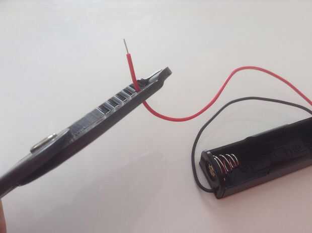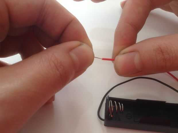 Esta es la parte más tediosa del trabajo de preparación. Sugiero poner un show mientras hace esto. El portapilas optimiza mucho el taller y permite a los niños más pequeños a participar. Si estás corto de plazo de entrega o tiempo de preparación y su audiencia puede manejarlo, puede intentar incluyendo 2 cables extras y grabar la batería en lugar de utilizar el soporte de la batería. La posibilidad de tener una mala conexión con ese método es alta, y lo último que desea en un taller es una docena de participantes que todos necesitan ayuda para solución de problemas.