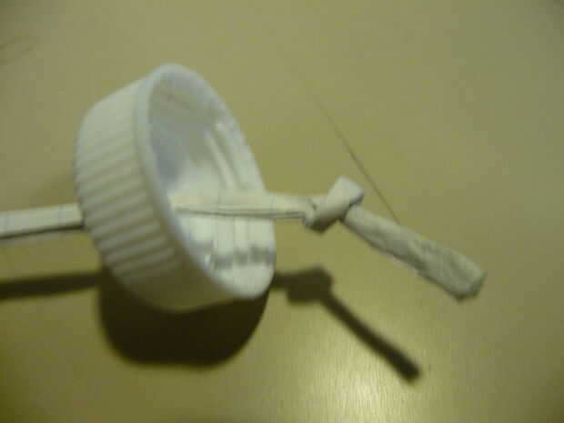 Para la otra tapa del hilo de rosca a través de la parte superior. También deja una buena longitud de un nudo.