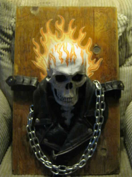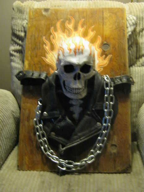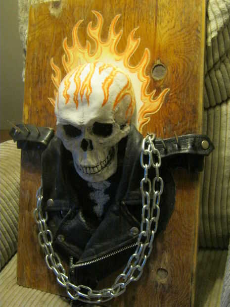 Aquí está un poco sobre lo que está involucrado en la construcción de trajes locos como Ghost RiderPaso 1: Bicicleta de montar a caballo de Kate en estacionamiento