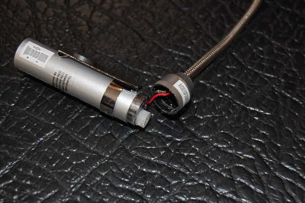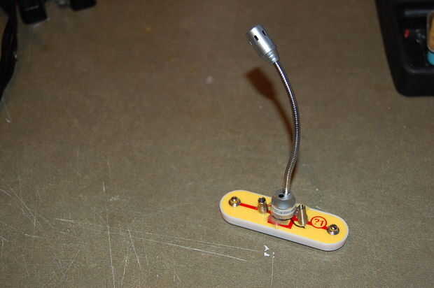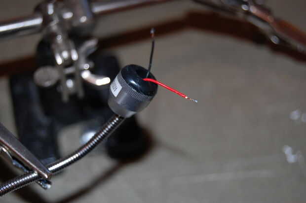Para fijar la lámpara a la unidad de conector, alimenté los cables a través de un ojal para evitar que accidentalmente les corte en el metal de la lámpara base.making que había despojado lo suficiente como para llegar a los muelles, luego caliente pegué el ojal en el centro el conector de resorte y el cuello de la lámpara en el ojal. Puse esto a un lado hasta que tuve el resto del circuito presentado porque no quiero que consigue golpeado alrededor.