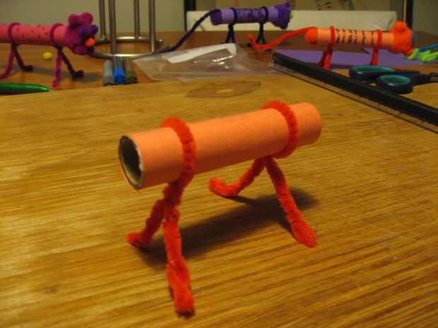 Twist dos limpiapipas alrededor de cada extremo del tubo para las piernas de forma. Luego doblar las piernas en la parte inferior a los pies de la forma.