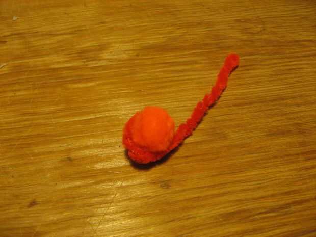 Si quieres a tu animal para tener una cola, dobla un limpiapipas por la mitad, torcerlo y doblarlo en forma de caña. Poner un pompón de tamaño mediano en el anzuelo de la caña. Si no quieres que tu animal para tener una cola, acaba de poner a un lado un pompón mediano. Éstos se unirá más tarde.