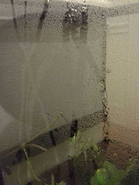 Descubrí el segundo día que empañan los que sus senderos de moco, que pensé fueron evaporándose, realmente eran todavía residualmente en el vidrio y al parecer a prueba de agua! (Buenas noticias para el arte de caracol!)