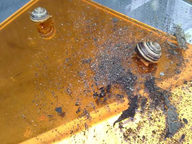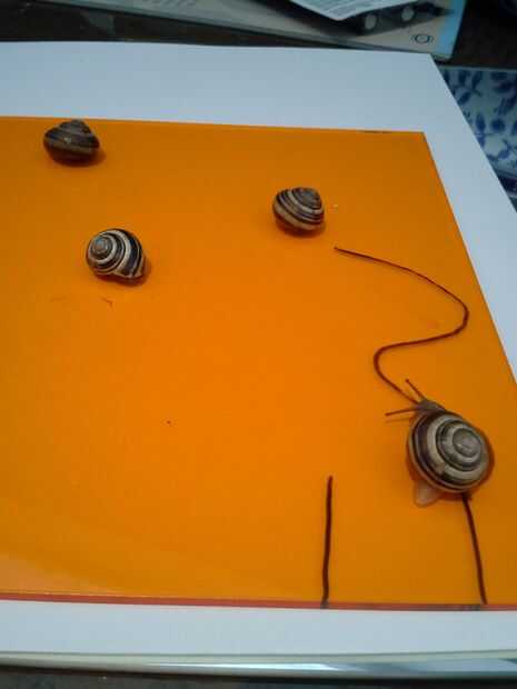 Todavía quería averiguar cómo utilizar sus "pistas" para hacer arte... Fue en que punto que me fui de casa y deliciosamente descubrió las huellas de caracol que habían permanecido secreto dentro del tanque.