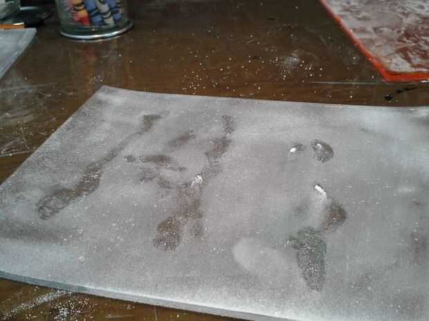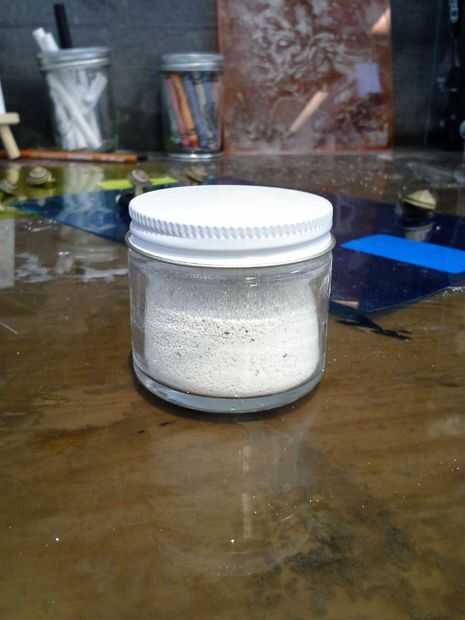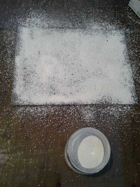 Cuando todavía estaba pensando en tener los caracoles labrarse un camino a través de una sustancia de la tierra, hice polvo de cáscara de huevo por lo que también es nutritivo para ellos! Esto funcionaba bien para esos fines, pero funcionaba increíblemente bien para quitar el polvo de las superficies después de que los caracoles se arrastró alrededor de un poco. (Mejor que ambos tiza polvo y harina).