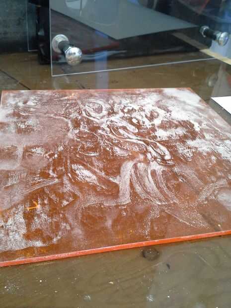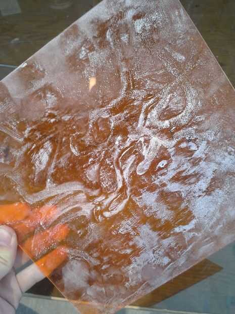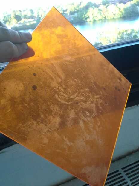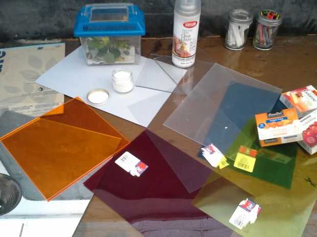 Utilicé la pieza naranja de acrylite y algunas láminas de plástico colores varios desde la tienda de arte local, así como dos pequeños trozos de suave-tallan linóleo que encontré en el estante, significó para el grabado. Vas a querer una superficie lisa, no adherente, apretando estática aunque. Papel y cartón no funcionará.