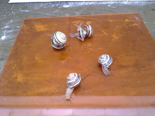 Así que para empezar, dejar que los caracoles moverse un montón en su superficie de elección! Sólo te arrastre, en su mayoría y en otras cosas al azar cerca. Tienes que tipo de les corral ocasionalmente a recogerlos y ponerlos en la superficie de trabajo hasta que crees que es suficientemente slimed.