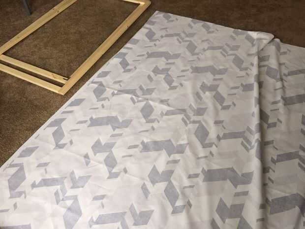 • Corte a la tela alrededor del marco, dejando sobre 2"- 3" extra por todos lados (suficiente para envolver alrededor de la parte posterior del marco).