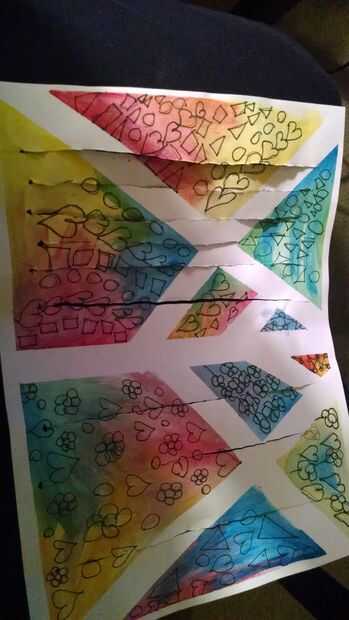 Tríptico de paisaje marino, 2015 (acrílico y lápiz sobre paneles de madera grabado a láser)Se trata de un tríptico hecho de paneles de madera que fueron grabados con un láser de corte y luego fleshed hacia fuera usando técnicas de dibujo y pintura tr
