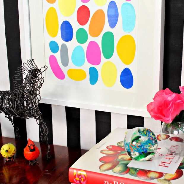 Es un juego de niños para hacer obras de arte moderno con materiales simples y asequibles. Con esta técnica, usted puede crear fácilmente una serie de obras de arte similar para unir la decoración de su hogar. Para ello, sólo tres de los mismos color