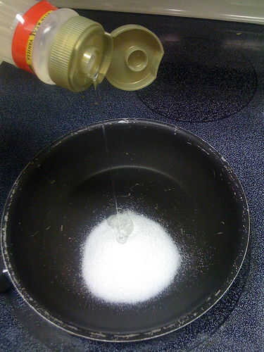 Agitación y calor medio. Cuando el azúcar se disuelva y la mezcla está hirviendo, dejar de revolver. Un rato puede agitar la cacerola de vez en para asegurarse de que todavía se mezcla.