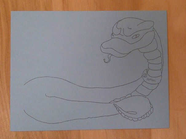 Imprimí mi imagen de python en la tarjeta superior antes de cortar.