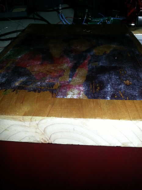 Una vez se haya secado vas a querer terminar el arte. Vas a querer un lavado húmedo dejaron ropa y limpie el papel de la imagen dejando sólo la tinta en la madera. Asegúrese de no limpiar la tinta de la madera. El papel debe salir bastante fácil. Una vez que tengas todos los borrados van a quieren limpiar la imagen de madera con su materia de mod podge. Utilice un cepillo y cubrirlo completamente.