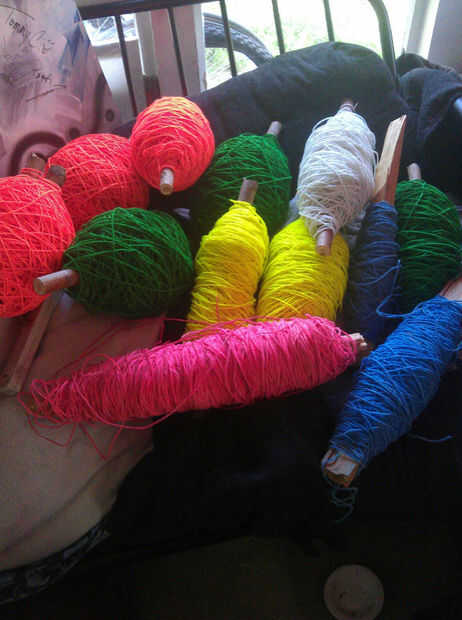 Ajustar el hilo cuidadosamente para secar, puede que desee hacer fan las cuerdas separadas cada 4-5 horas si realmente mojado con pintura. Después de secar, enrollar el hilo en una clavija. Si el hilo no está enredado demasiado puede poner la espiga o el palo en un arma del taladro y envolver de manera eficiente.