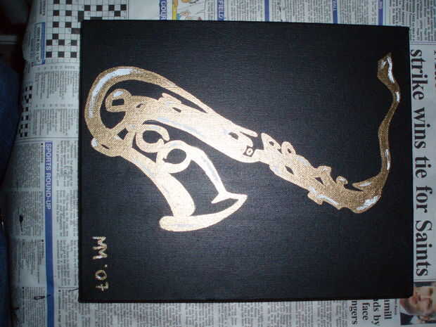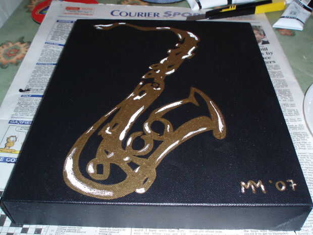 Primer paso es decidir en una pintura. Otra vez, para este uno había pintado un "Saxamaphone" para mi amigo. La parte musical de este proyecto serán relacionados con el Jazz. Esto tomó aproximadamente una hora a hacer, pero usted puede hacer cualquier cosa, deja volar tu imaginación ir salvaje. Algún tipo de tema audio aunque sería cool.