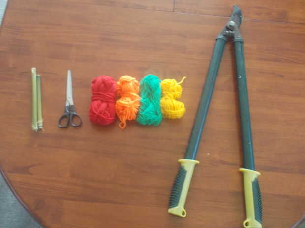 2 palos o 2 pedazos de madera (bambú, varilla de dowling)