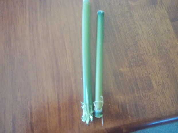 Obtener 2 palos o 2 pedazos de madera del mismo tamaño. Que utiliza el bambú para éste pero se pueden usar 2 sticks, 2 pedazos de madera o incluso 2 barras de dowling.