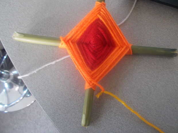 Arte de cadena de ojo de Dios. (6 / 8 paso)