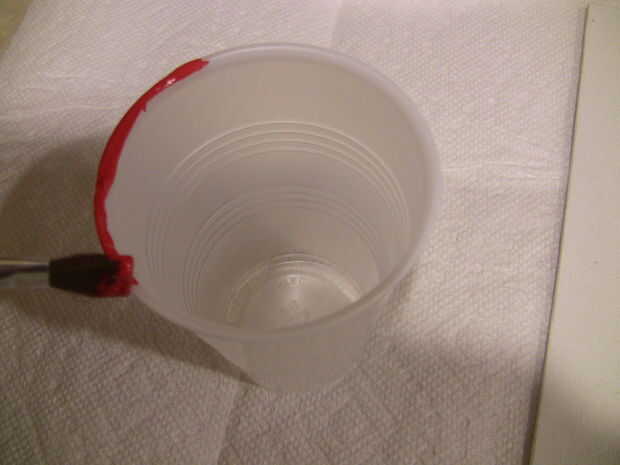 A continuación, tomar una taza de tamaño y utilizar un pincel para pintar el color de su elección en el borde de su copa.