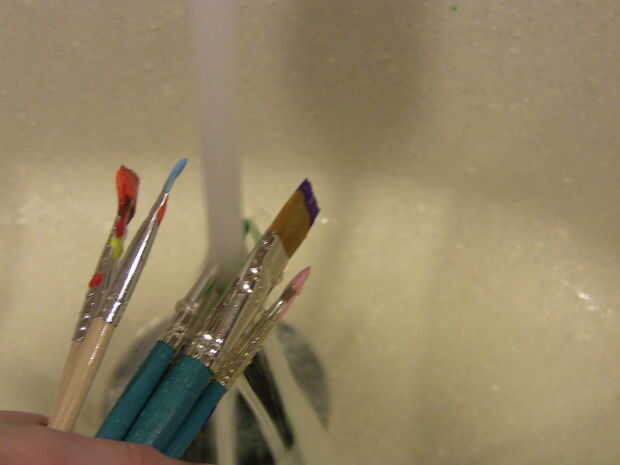 Ejecute la paleta de pintura en agua, por lo que la pintura se sale. Entonces simplemente séquelo!