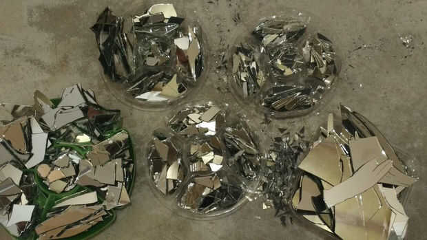 Consejo: Para facilitar el acceso al planear su pedazos de espejo para su arte, organizarlas en diferentes contenedores por el tipo de pieza espejo es. Por ejemplo, un envase será para piezas largas y rectangulares. Otro podría ser de corta triángulos. Sólo trate de juntarlos de tal manera que usted puede encontrar un pedazo de "pequeño, mediano, grande, extra grande" con facilidad y en el tipo básico de la forma que estás buscando.