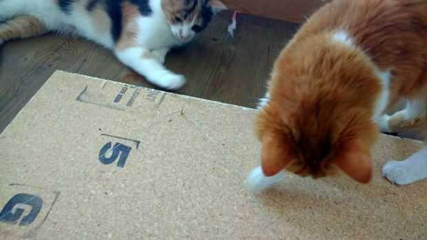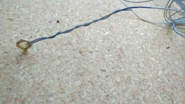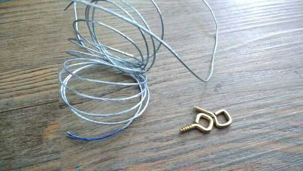 Las instrucciones de la palabra posterior para montar estos ojos aproximadamente 1/3 del camino hacia abajo de su arte, así que mi arte que se trataba en el 9" marca. Martilló en un poco, para obtener el orificio de iniciado, y luego había torcido en el resto del camino a mano. A continuación, había roscado imagen colgante de alambre a través de él. Sólo dejar unas pocas pulgadas en el extremo para girar alrededor del alambre y hacer realmente seguro. Una vez que pasa por el segundo ojo (asegurándose de que cuando tensas el cable estaría en la posición de suspensión adecuada... sobre 1-1.5" de la parte superior de mi arte), me torcí hacia atrás alrededor del alambre hacia el principio otra vez. Esto asegura se mantenga y mantenga bien. [También aprendí este alambre añadiendo hizo una divertida y gatito interactivo juguete jajaja].
