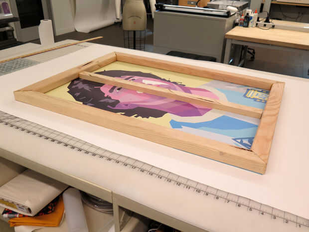 Cortar la lona por lo menos 6-8 pulgadas más ancho que las dimensiones de las barras del ensanchador (teniendo en cuenta la profundidad del marco). Usted necesitará este lienzo extra para tener algo para conseguir un apretón en el que poder tirar y estirar.