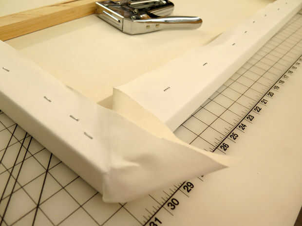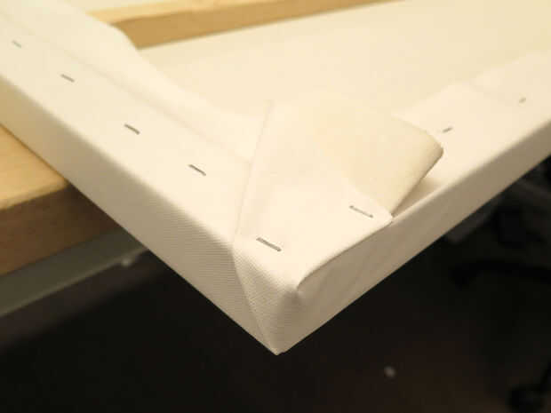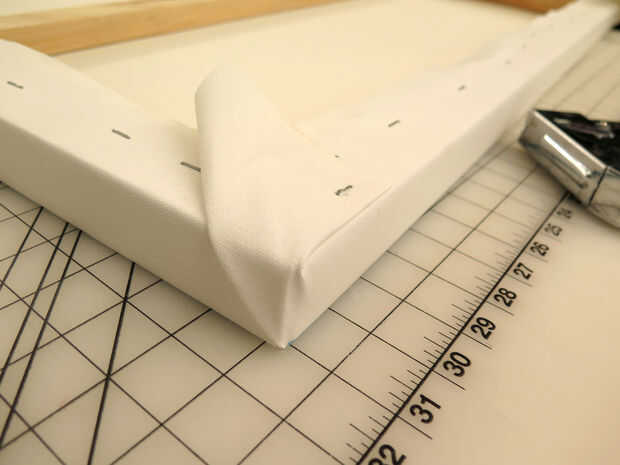 Tire firmemente de las esquinas, ya que este es el ajuste final dar el lienzo y lo más importante.