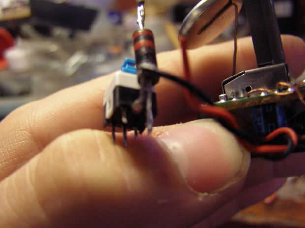 Utilizar un botón SPDT para el circuito que enciende los ojos.