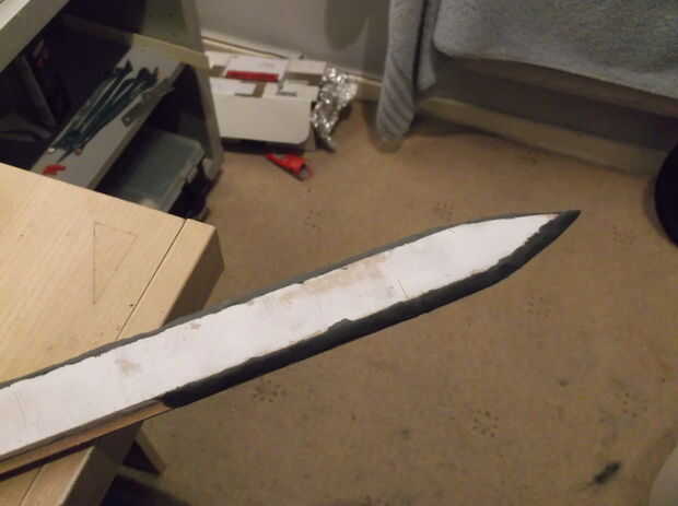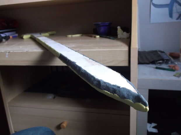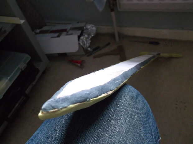 Una vez sellado, ahora puede aplicar la arcilla Epoxy alrededor de las lagunas; Esto se utiliza para crear los bordes biselados de la espada. 2 parte de Epoxy arcilla se mezcla con la proporción 1:1 y se mezclan hasta que el color sea uniforme. (color dependiendo marca y tipo)