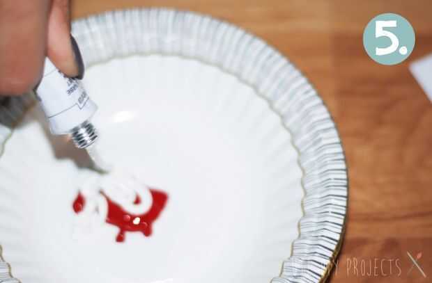 Apriete la pintura blanca sobre el rojo. Puesto que busca un tono claro de color de rosa, tendrás más pintura blanca que roja.