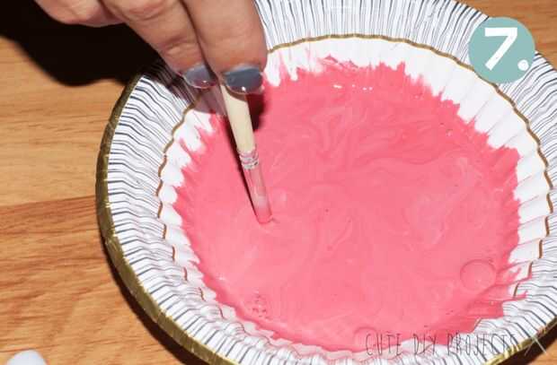 Seguir mezclando hasta que ambos colores se incorporan completamente. Debe obtener un tono claro de color de rosa – si no es lo que estás esperando, ajustar mediante la adición de un poco más de pintura rojo o blanco hasta conseguir el tono deseado.