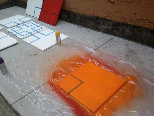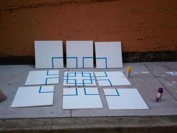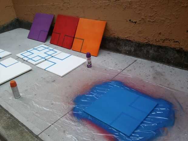 - Establecidos todos los lienzos y me mantuvo en el orden que eventualmente estarían en mi muro. De lo contrario habría perdido la pista y jodido inevitablemente.