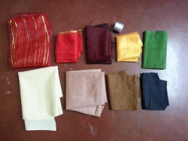 8) pequeños granos, sobre todo oro y rojos (para hacer joyas para los títeres)