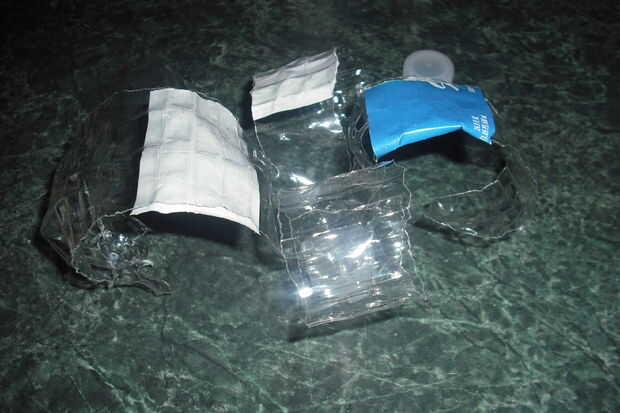Parada justo encima de la tapa, repita el paso anterior, crear tiras de plástico que vienen de cerca de la tapa.