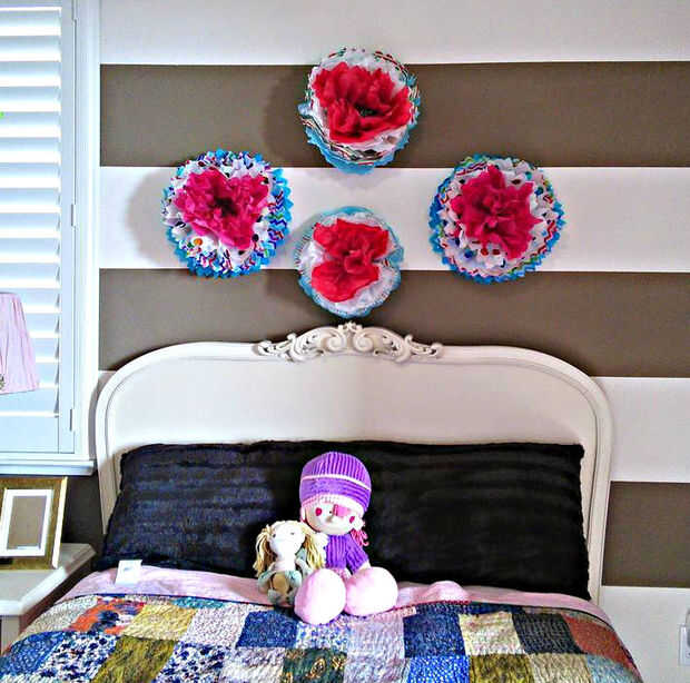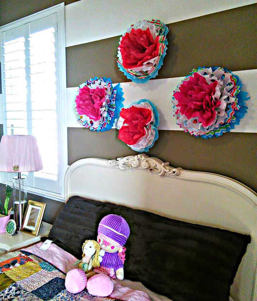 Uno puede utilizar el concepto y hacer flores de tamaño más pequeños. Que sea multi colores o solo flores para la decoración de hogar o fiesta del color.