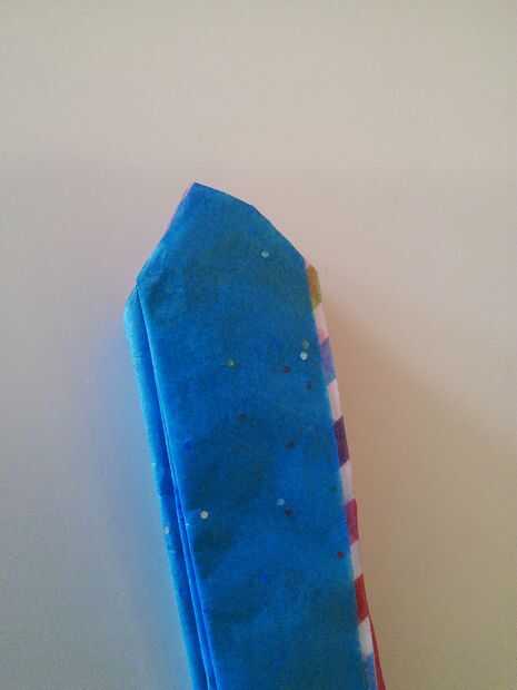 4. ahora use una tijera para cortar 2 pulgadas de cada extremos. Cortan los extremos en forma de V inversa. Como la foto de arriba
