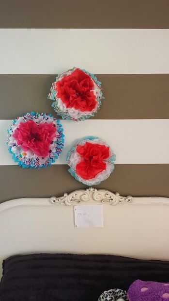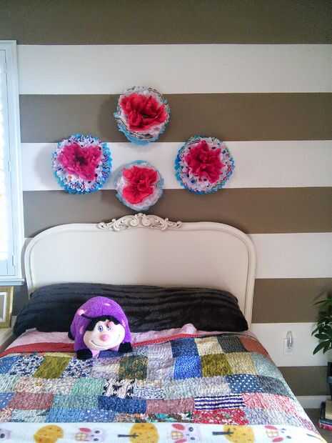 -Como un arte de pared barato pero bonito. He utilizado 4 de estas flores a la cubierta mi cuarto hijas en lugar de colgar una pintura de caras.