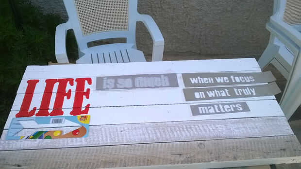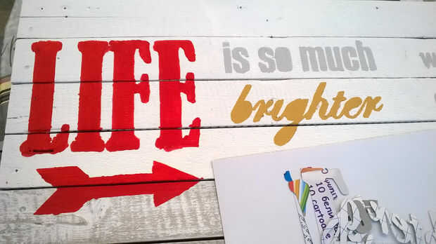 Tenga mucho cuidado al pintar las palabras, no a pintar fuera de las líneas. Sin embargo, tenga en cuenta, que incluso si lo hace, puede siempre utilizas alguna pintura blanca para corregir tus errores. Después de la cita en los tablones de la pintura, deje que la pintura seca durante al menos 4-5 horas. Después de que la pintura esté completamente seca, utilice las letras que corte de la cartulina antes (ver imagen 8 y 9 de este conjunto) para pintar los agujeros blancos. Así, las palabras pueden ser más específicas.