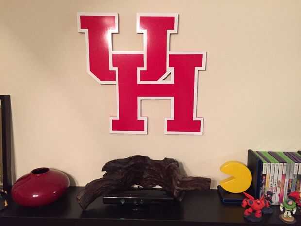 El 31/12/2015 la Universidad de Houston ganó el tazón de fuente del melocotón. Era la primera vez en varias décadas que UH que un tazón de fuente juego ni que decir de esto fue un día emocionante para la Universidad de Houston. Mi esposa y yo ambos de UH y nunca tuvo ningún UH memrabillia hablar de además de los grados que nos cuelga con orgullo en nuestra oficina. Para conmemorar la ocasión que me decidí a hacer este logo UH que colgará en nuestra sala de juegos.