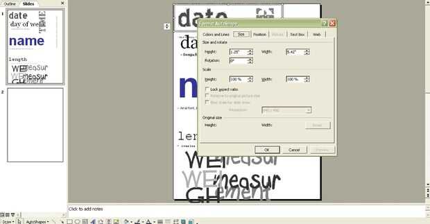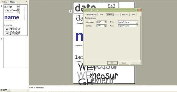 Nota: Para uno de mis hijos, tuve que hacer esta caja larga (debido a la ½" además de la longitud) como la configuración en el programa de Power Point para 'envolver' el cuadro de texto.