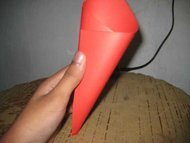 Ahora toma un adge de una sola pieza y doblar en un cono como he demostrado en la imagen. Encolarla perfectamente.