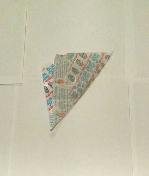3. cortar la parte desplegada en la envoltura o del rectángulo dejando un triángulo perfecto